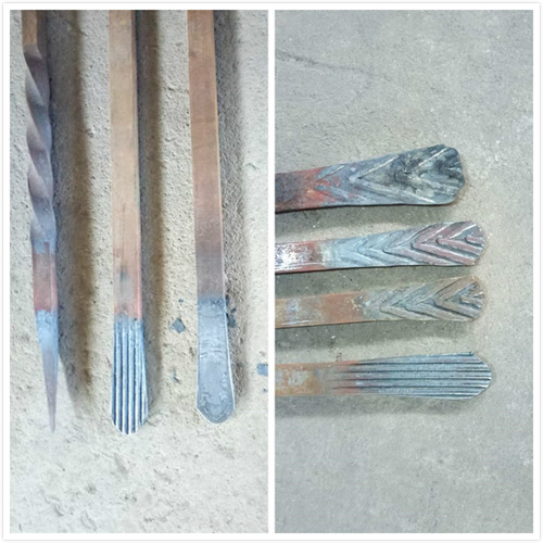Main Features | 1. No need to beat and chamfer the steel, it can forging the steel end to fishtail after heat the steel. The end become winder and thinner, the thickness is more than 2 mm. 2. It use cyclonical speed reducer, large torque. It adopts special way for the torque transmission between the gear box and working case. Ensuring smooth and reliable mechanical operation. 3. There have location device behind the machine, we can set the material effect entrance length according the requires. So we can get the best effect product. 4. When we process 10mm or bigger steel, we can use the wide design of the mold and then get the more beautiful fishtail pattern. 5. This machine have a wide process range, large working ability, high efficiency, we can produce 300 pieces of 8*40mm fishtail. 6. The mold material is good qualitym long life time, and each roller can forging at least 100,000pieces. | |